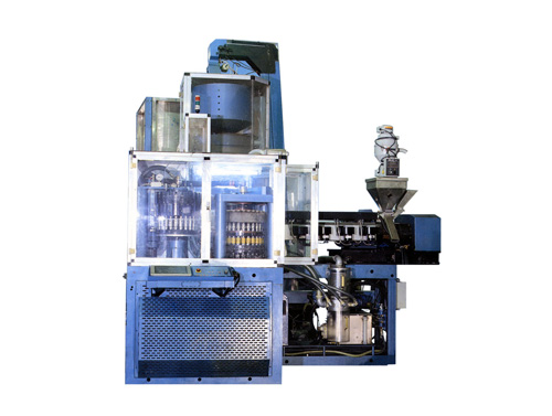 适用于PVC颗粒料。挤出干混热塑性复合材料,恒重及切成粒状,并放入瓶盖内,用冷模压法将之制成密封垫片形状。产量取决于所用的垫片材料,用PVC材料 时,产量可达每小时140,000只,采用非PVC材料时,产量约为每小时100,000只(需另选配一套非PVC材料的改装件)。